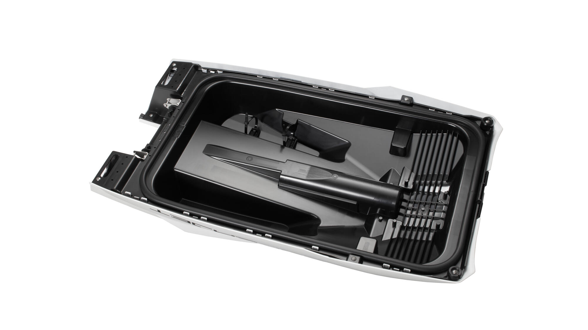 The injection-molded hatch helps lower the center of gravity, improving stability and overall control.